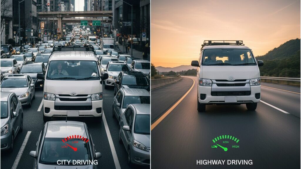 ハイエースのディーゼル4WDモデルは、走行するステージによって燃費が大きく変わるという特徴があります。
